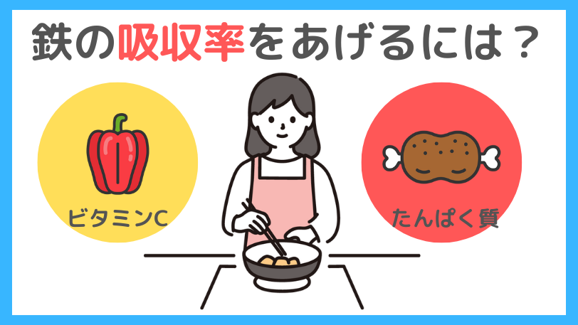 前述のとおり、非ヘム鉄は、体内の鉄が不足しているときには吸収率が高まる性質があります。しかし鉄不足でない人は吸収率が下がる傾向があるため、吸収を助ける食材と組み合わせることが効果的です。
