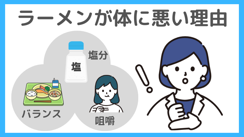 ラーメンが体に悪いと言われる理由は、大きく分けて以下の3つです。